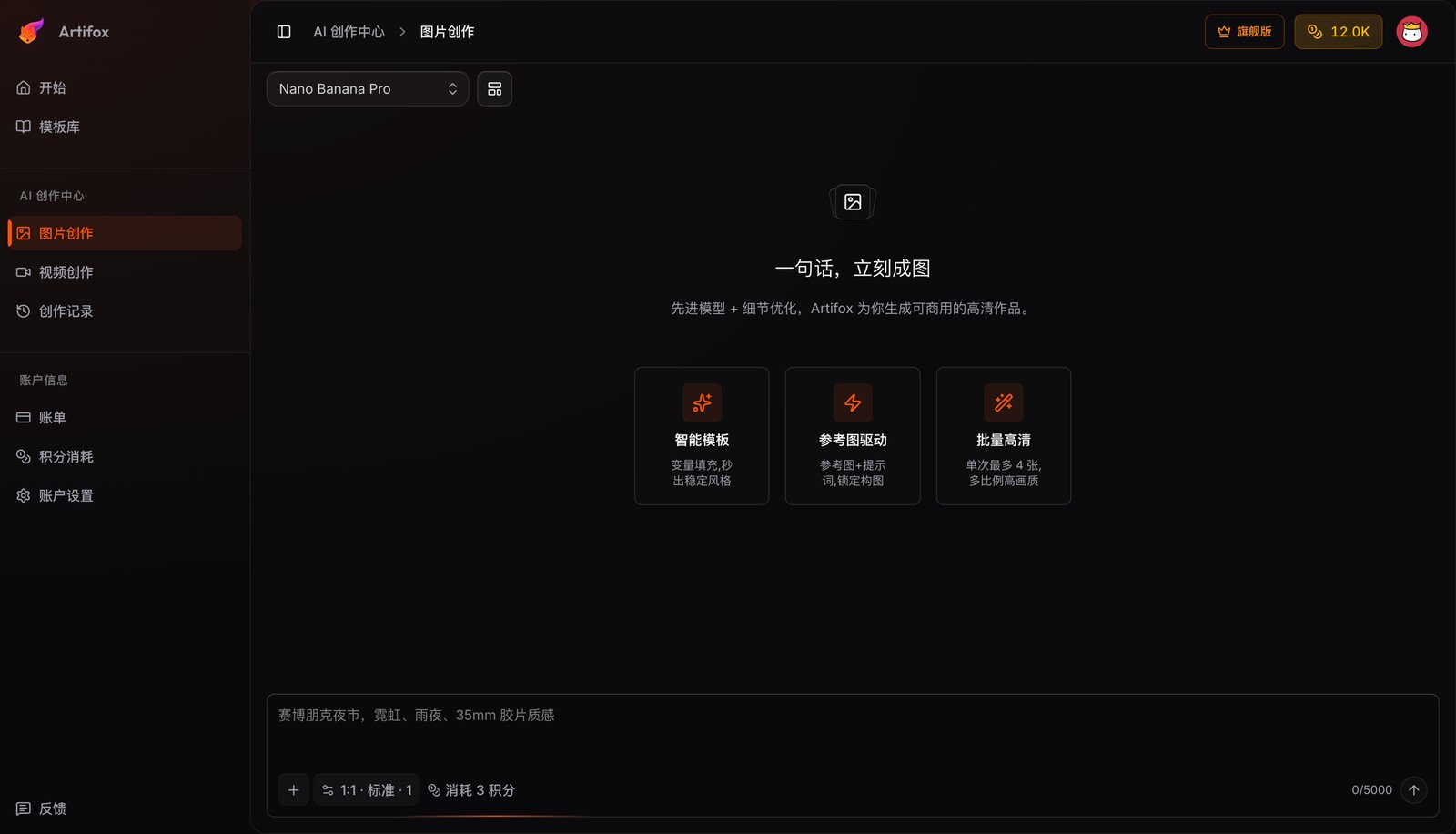从“自拍写真”“动漫头像”“梗图”“ASMR 视频”等模板中选择,或直接输入你的创意描述。